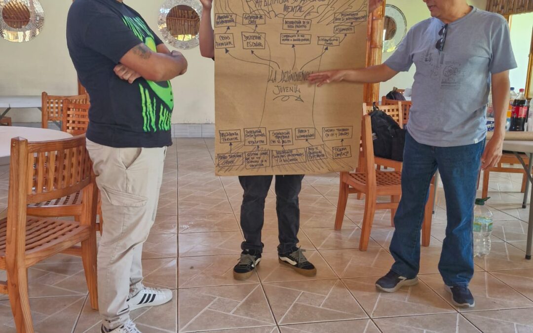 A través de metodologías participativas de Educación Popular, como el Árbol de Problemas, trabajadoras/es sociales, psicólogos/as, técnicos y trabajadores de apoyo, pudieron analizar las causas, efectos y síntomas de las problemáticas en justicia juvenil, para reflexionar del sentido del trabajo y comprender los procesos con una mirada crítica del sistema y el rol que cumplen quienes trabajan en los Centros de Cumplimiento CORFAL.